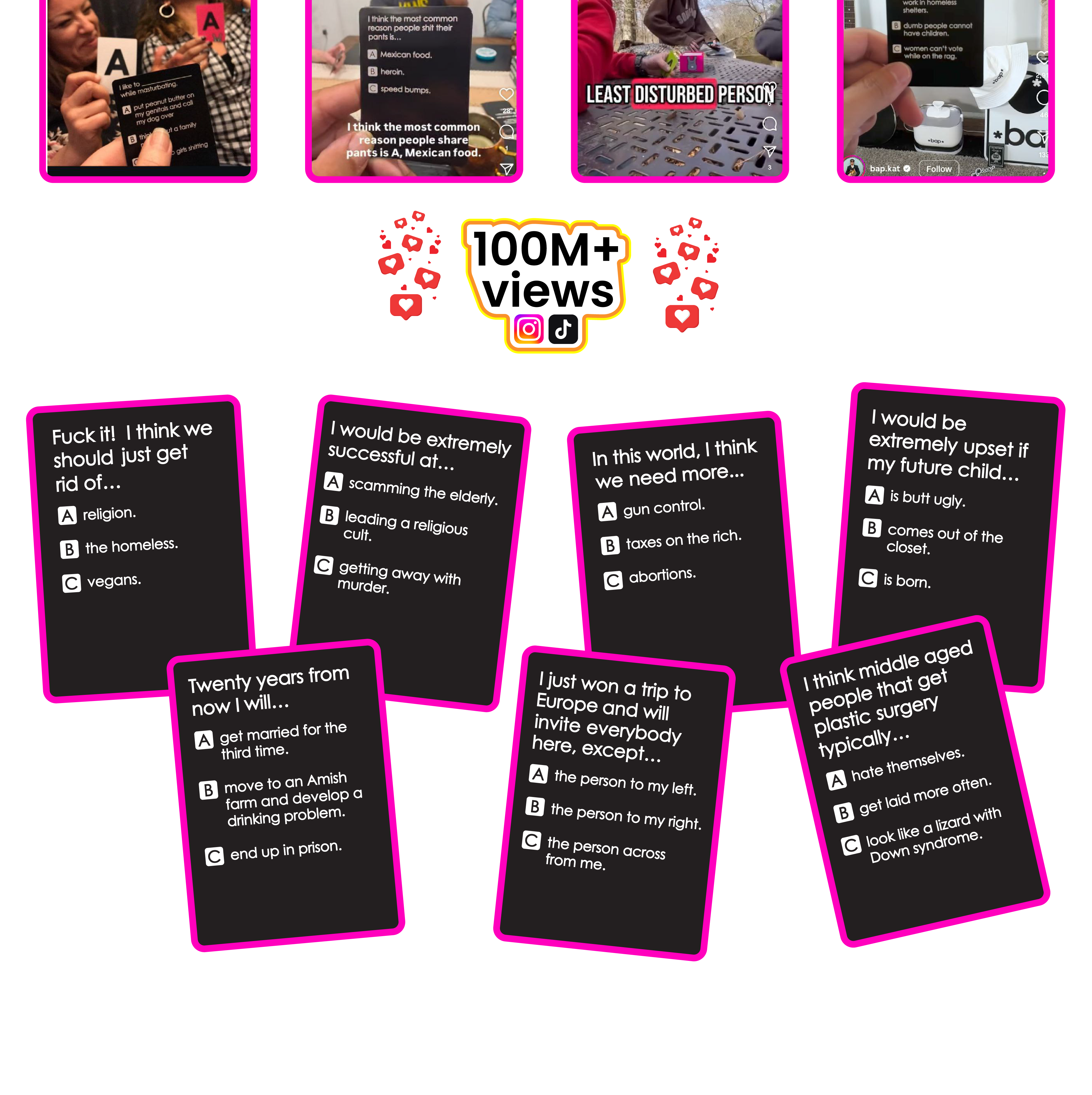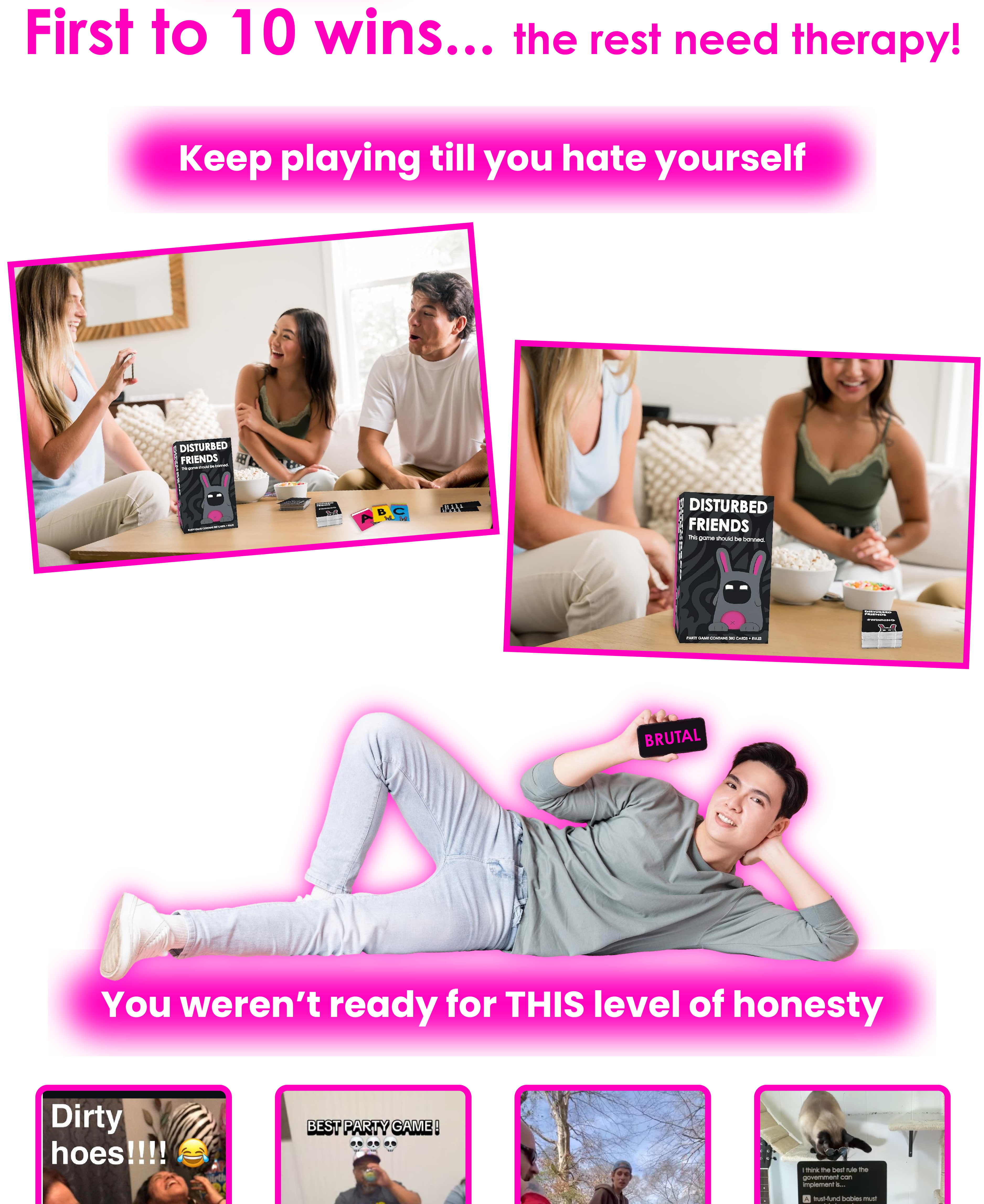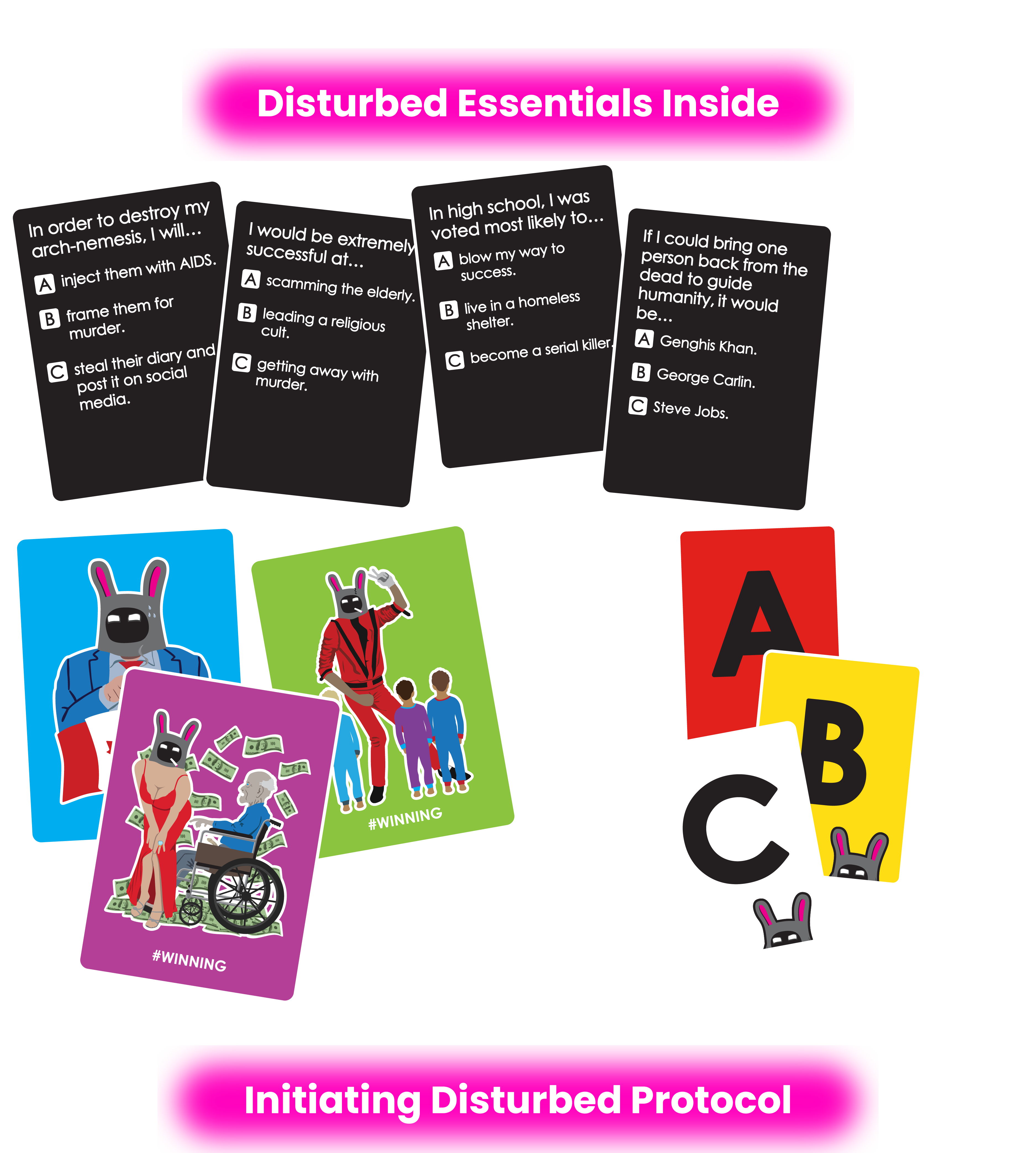 If you’re looking for a safe, wholesome party game… keep scrolling. Disturbed Friends is the card game that’s so inappropriate, it probably should be illegal. You’ll find out how messed up your friends really are—and how messed up they think you are.